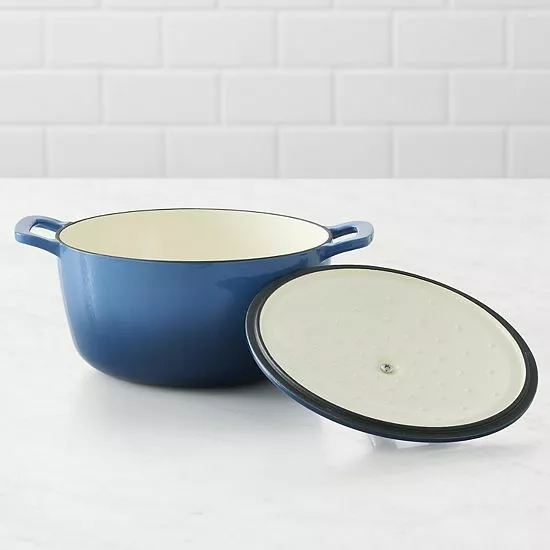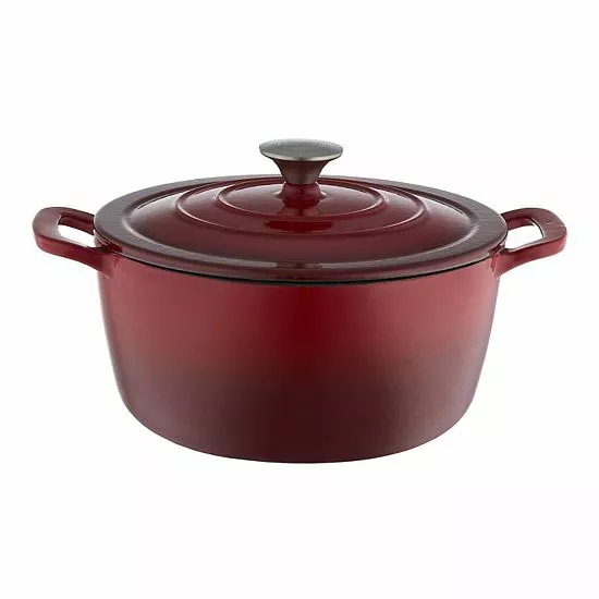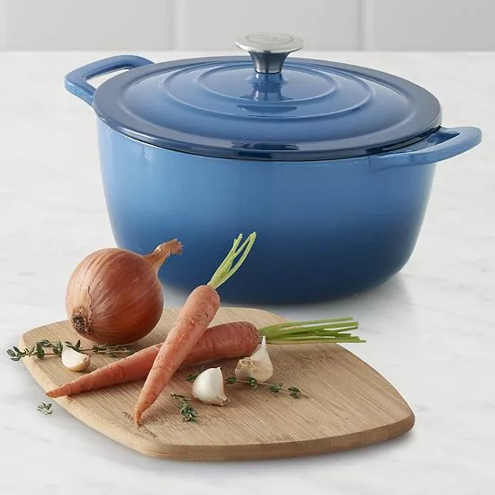This cast-iron Dutch oven by Food Network will be your go to for braises, stews, chilis or anything that needs long, gentle heat.