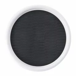 - Gray nonskid liner keeps items in place while rotating